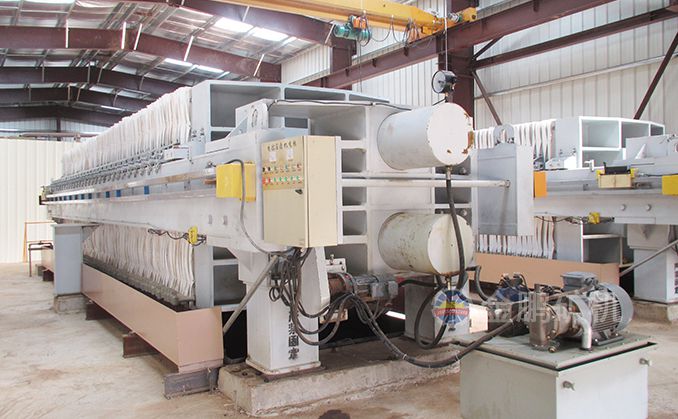 浸出槽尾礦經緩沖槽由泵輸送到全自動廂式壓濾機,壓濾后的水流入循環水池以備循環利用,濾餅經帶運輸機運到尾礦堆場,卡車將尾礦運到尾礦庫。