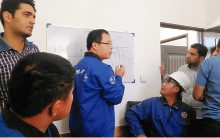 為了讓客戶的選廠盡早投入生產(chǎn),并擁有穩(wěn)定的技術(shù)團(tuán)隊(duì), 保障日后礦山的正常運(yùn)營,金鵬會(huì)委派安裝調(diào)試團(tuán)隊(duì)中的技術(shù) 骨干來負(fù)責(zé)培訓(xùn),這些經(jīng)驗(yàn)豐富的 工程師們將對所有選礦設(shè)備、選礦工藝在選廠運(yùn)營中的常見問 題進(jìn)行培訓(xùn),為工人現(xiàn)場演示解決方法。