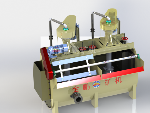 XCF型具有自吸礦漿能力,可水平配置,不需要泡沫泵,但功耗較KYF略高一些,而KYF型無自吸礦漿能力,功率較低;因而一般都將XCF型和KYF型配置成機組,XCF型為吸入槽,KYF型為直流槽,聯合機組可水平配置,不需泡沫泵。